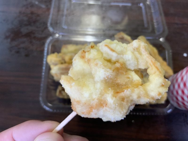 最近、唐揚げ屋さん増えましたよね。私も大好きです。今回紹介するのは戸島の住宅街をさまよっていたら発見した「あげもの福ぷく」のとり天です。カップ入りは1カップ5個入りで180円と安価ながら、めちゃくちゃ旨いんですよ、これが。合わせて一度煮込んで揚げたごぼう天も美味しくて、何度も訪れたくなるお店でしたよ!