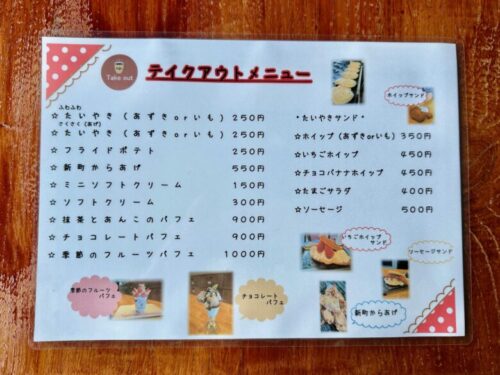 たい焼き以外にも、パフェやふわふわフレンチトーストなどもあり、