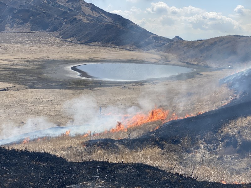 野焼きはほぼボランティアで行われているので、延期になると本当に大変なんです。しかし自然相手ですからそこはどうしようもないところ。野焼きの準備はその前年の夏頃から始められているということも、ボランティアがほぼ県外の方であることも初めて知りました。
