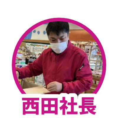 風のように走ってきたのは、フードプラザにしだの西田直哉社長。