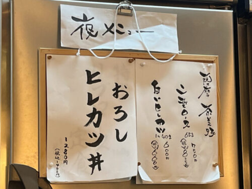 さらに、”呑みカツ”なるものもおすすめされています。今回はとんかつとお酒を楽しもうと夜にお邪魔しました。