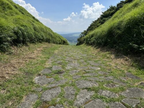 【阿蘇】歴史の道 「豊後街道 二重峠石畳」を歩いて絶景と昔の人々のエネルギーを見る散歩道~「豊後街道 二重峠石畳」と「牛王の水」~