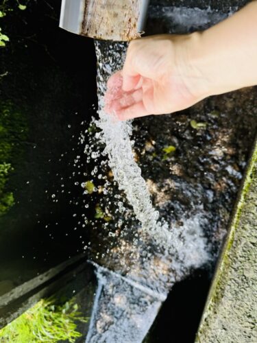 自然の中をびゅんびゅん通ってきて流れついているので、飲料水としてはお薦めしませんが、自然のシャワーに感動します。暑い日は尚更です。
