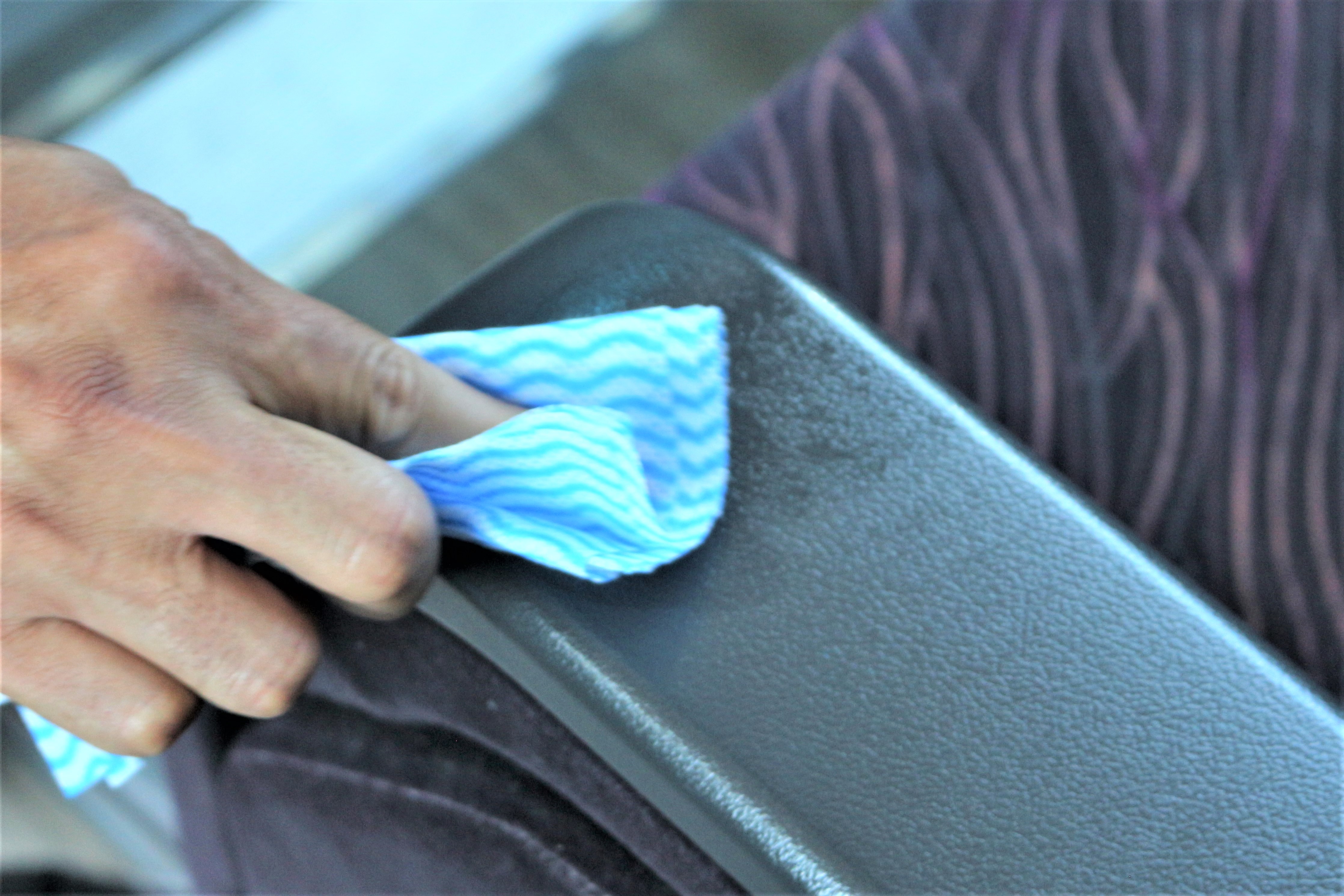 その肘掛けの表面を拭きとり