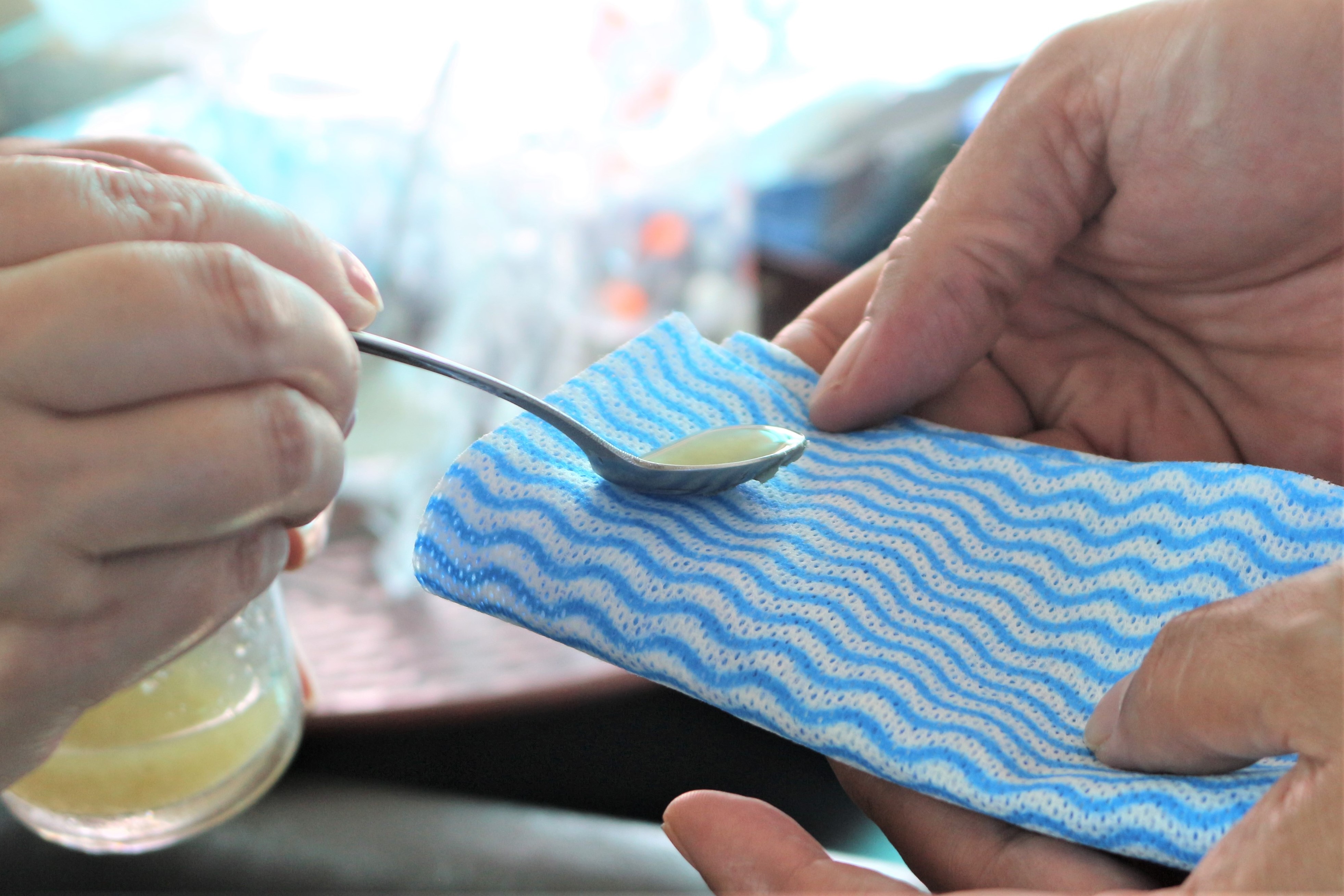 お次は生姜。同様ふきんにたっぷりと生姜汁を染みこませて