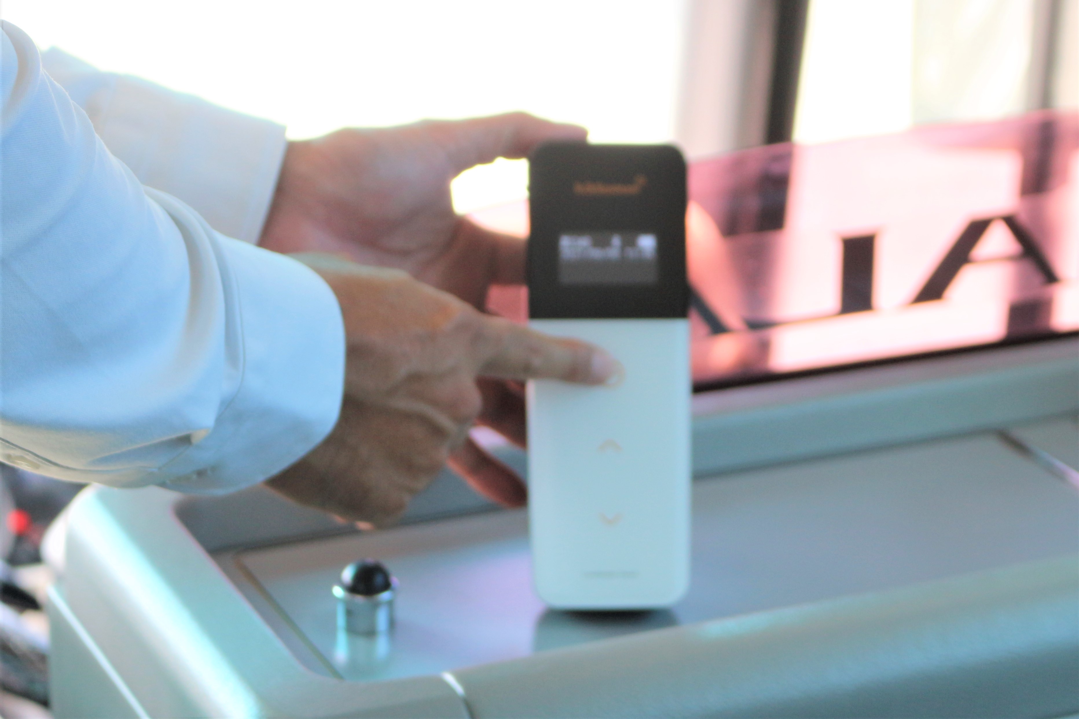 測定器に挿入します。10秒待つとデータが現れます。合格の基準値は、医療機関や厨房であれば500、手のひらだと2000だそうです。