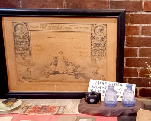 1915年の「パナマ運河開通記念博覧会」にお店の味噌と醤油を出品した際の表彰状も。