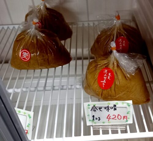 麦味噌と米味噌、合わせ味噌がありますが、この日は袋入りの米味噌が売り切れでした。