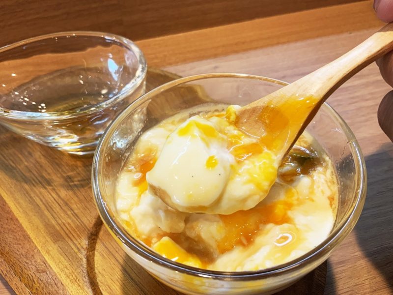 これをかき混ぜると完全に生プリン。生卵を使っているので、これはお店でしか味わえない美味しさ。