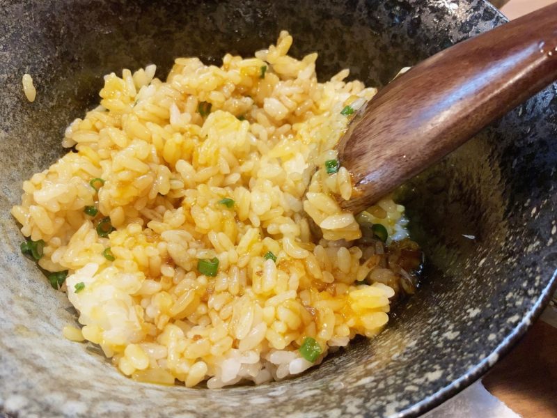 おかかとバターで炒めた焦がしネギが濃厚な卵と相性抜群過ぎて、あれだけ食べた後でも一瞬でなくなりました。