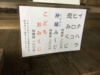 てっきり隣にある赤い箱がおみくじをひけるのかと思っていましたが、「恋みくじ」「神縁みくじ」「こどもおみくじ」は別の場所にあるようです。