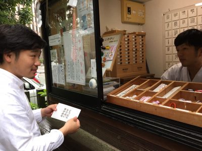 箱から棒を出し、棒に記載されている数字がおみくじとなるシステムです。