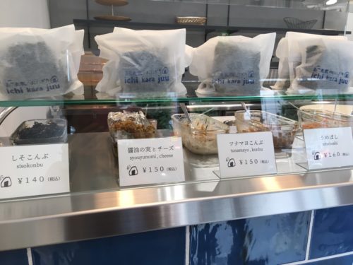 ショーケースには、シンプルな塩おにぎりや、ツナマヨこんぶなど、いろいろなおにぎりが並んでいて、どれもとってもおいしそう!!