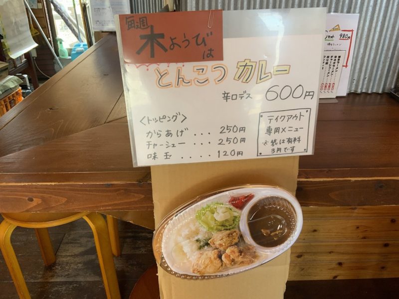 毎週木曜日限定、テイクアウト専用で提供をはじめた「とんこつカレー」。