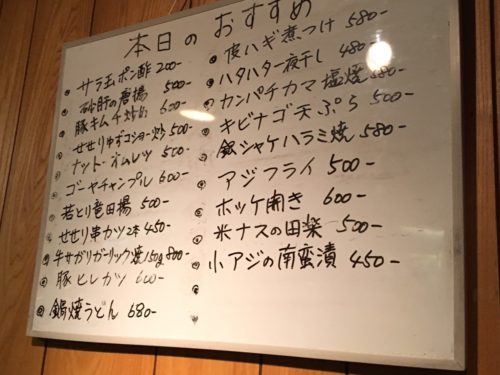 本日のおすすめメニューも多数あり、こちらも500円前後とうれしい料金設定となっています。