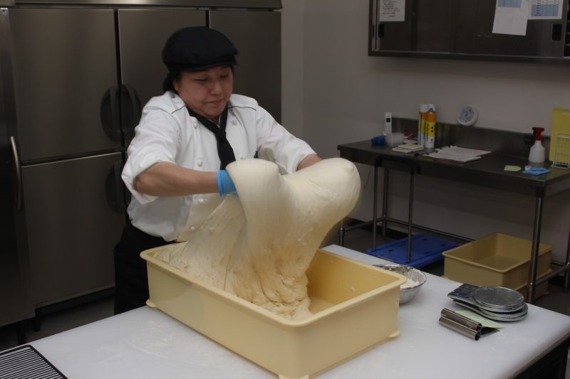 生地の段階でめちゃくちゃみずみずしい!つきたてのおもちよりも柔らかい生地でした。