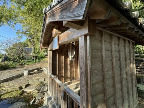 どんどんと住宅の中へとナビで案内され、「本当にこんな所に水源が?」と少し不安になります。車一台が通れるほどの細い道を前に「到着しました」のアナウンス。屋根の作られた水源が現れました。
