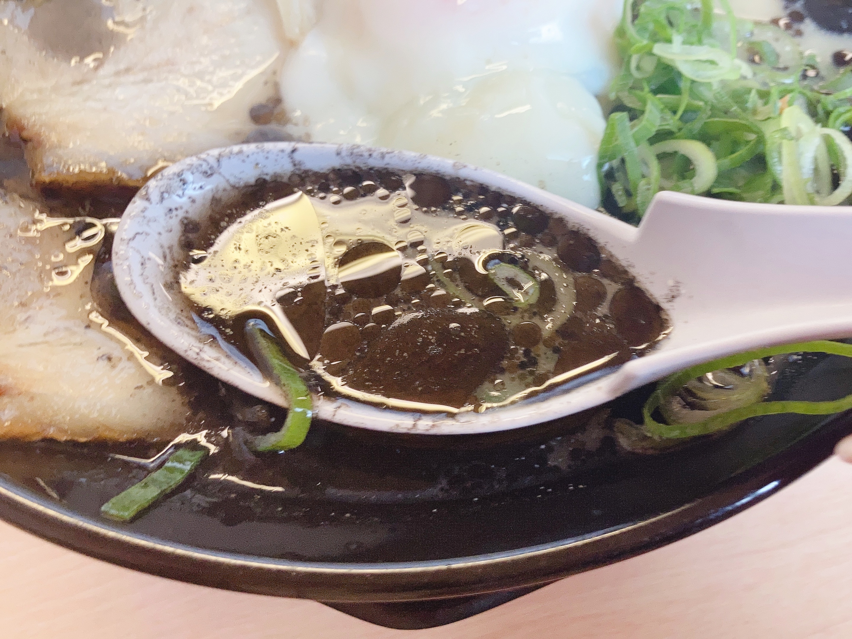 スープをレンゲですくうと真っ黒。
