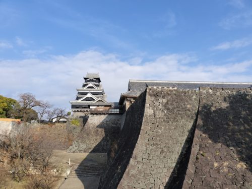 熊本城の入園料は大人(高校生以上)800円。この日は年末で観光客や帰省客なども多くにぎわっていました。特別見学ルートの南通路から見る二様の石垣がかっこいいです。