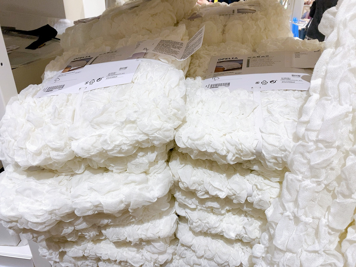 「ブルーももちろんあるんですけど、今回はこの限定コレクションですね。これマリメッコ×IKEAのコラボ商品なんですよ」