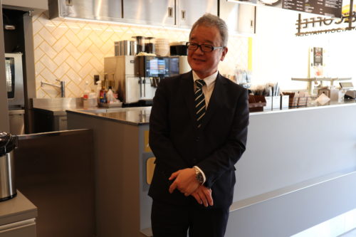 茶筅カフェ店長の松原さん(56歳)。以前あった交通センターホテルで長年料理人として働いていたのですが、その時共に勤務していた茶筅カフェの社長から「やってみないか」と誘われ、サクラマチクマモトに店を構えることに。