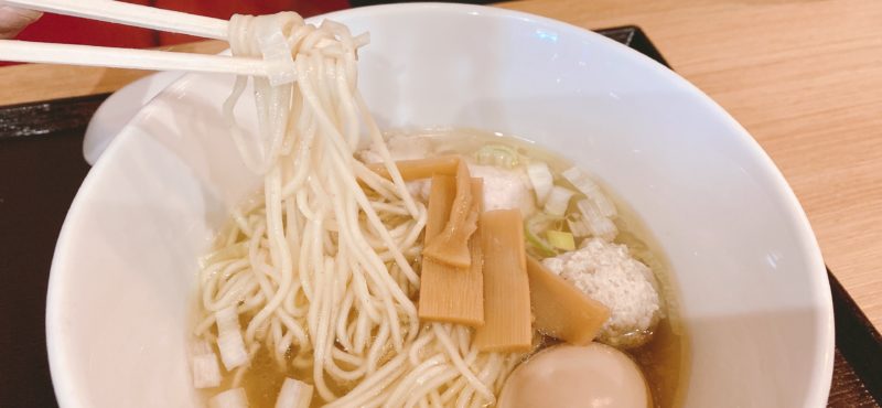 こちらも透明のスープに鶏のチャーシューとつみれがのっています。