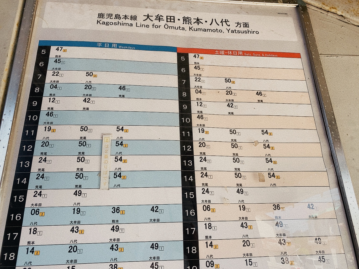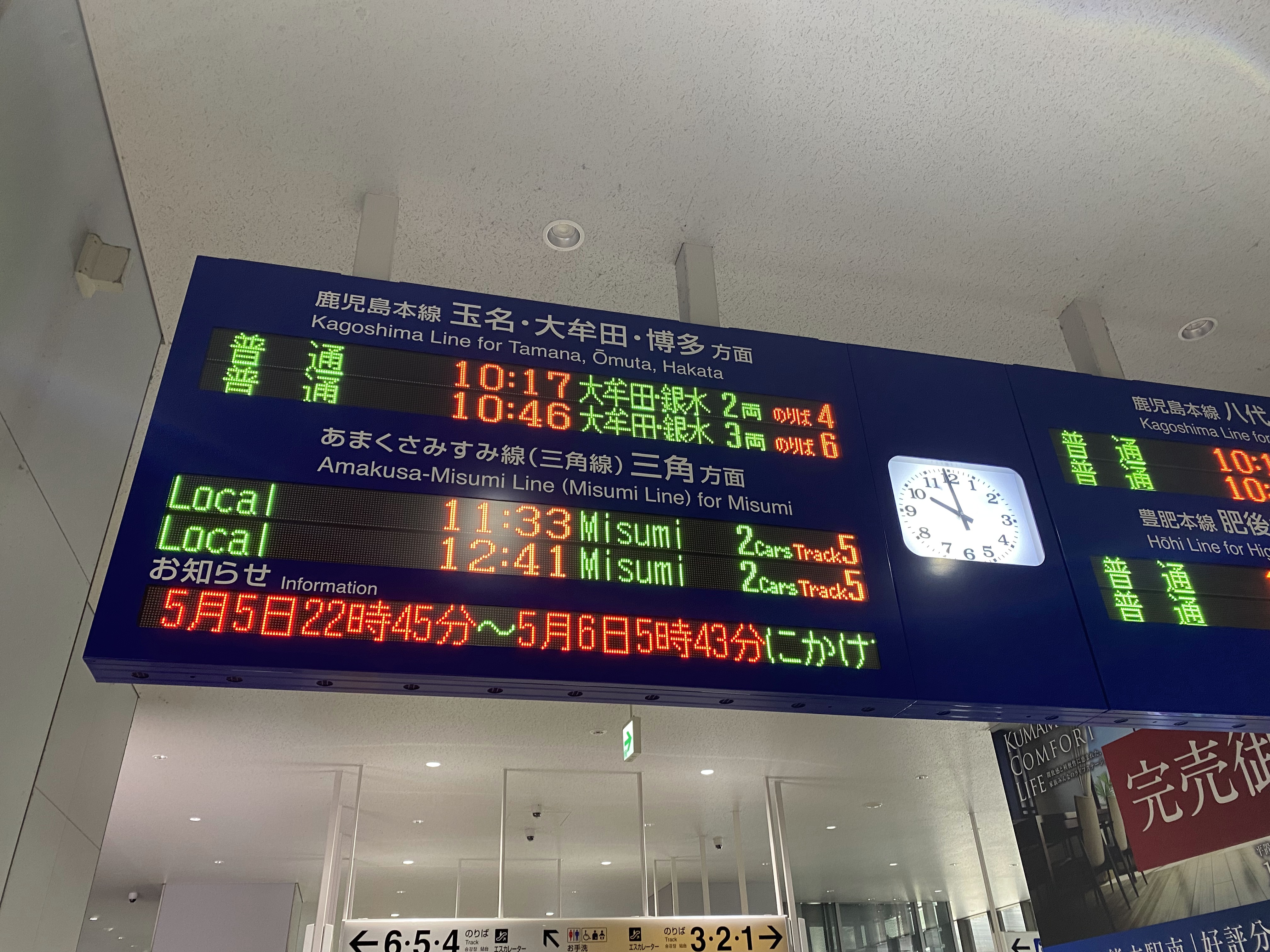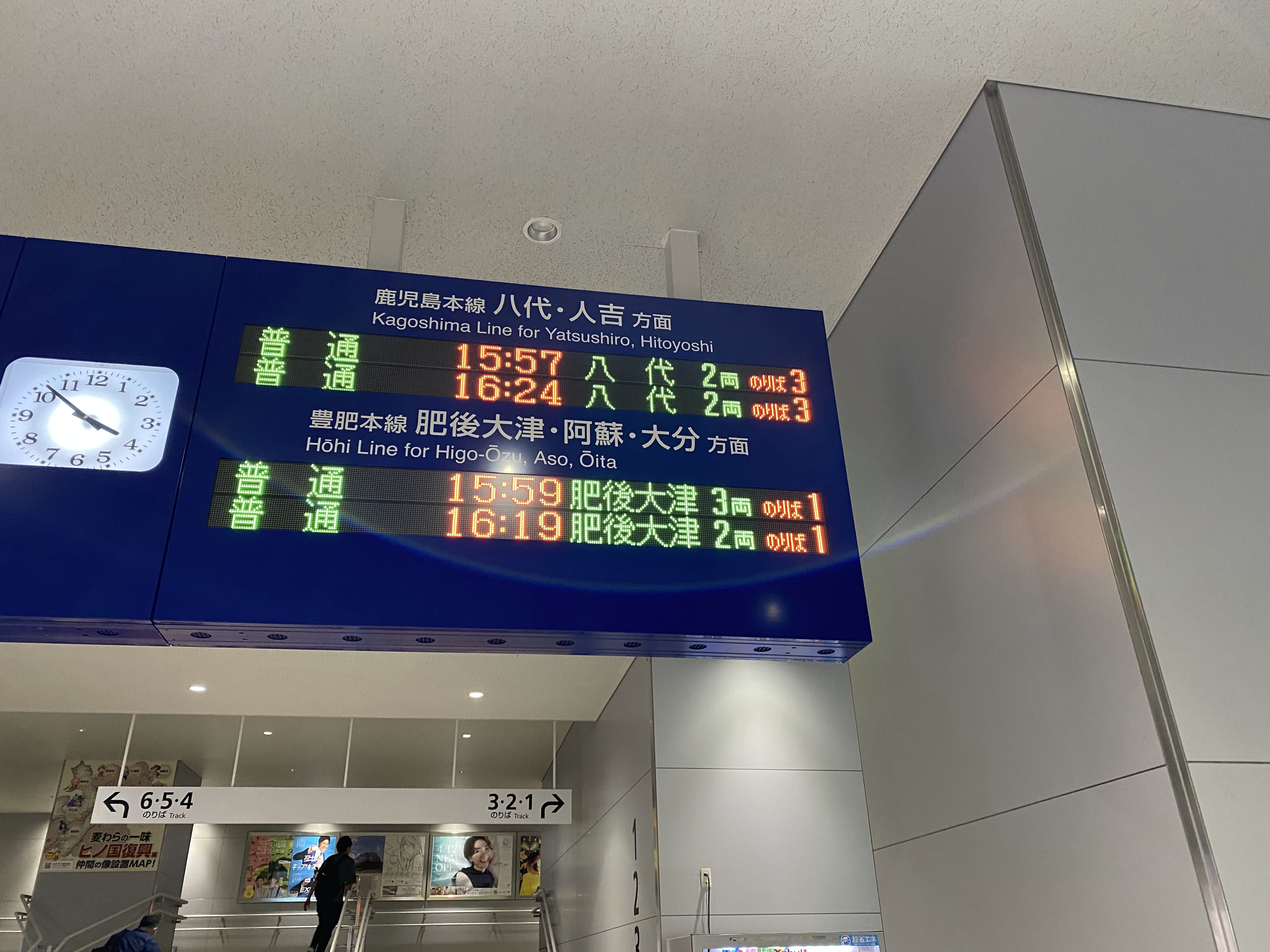 慌てて1番ホームに戻るも、熊本駅行きはすでに出発。