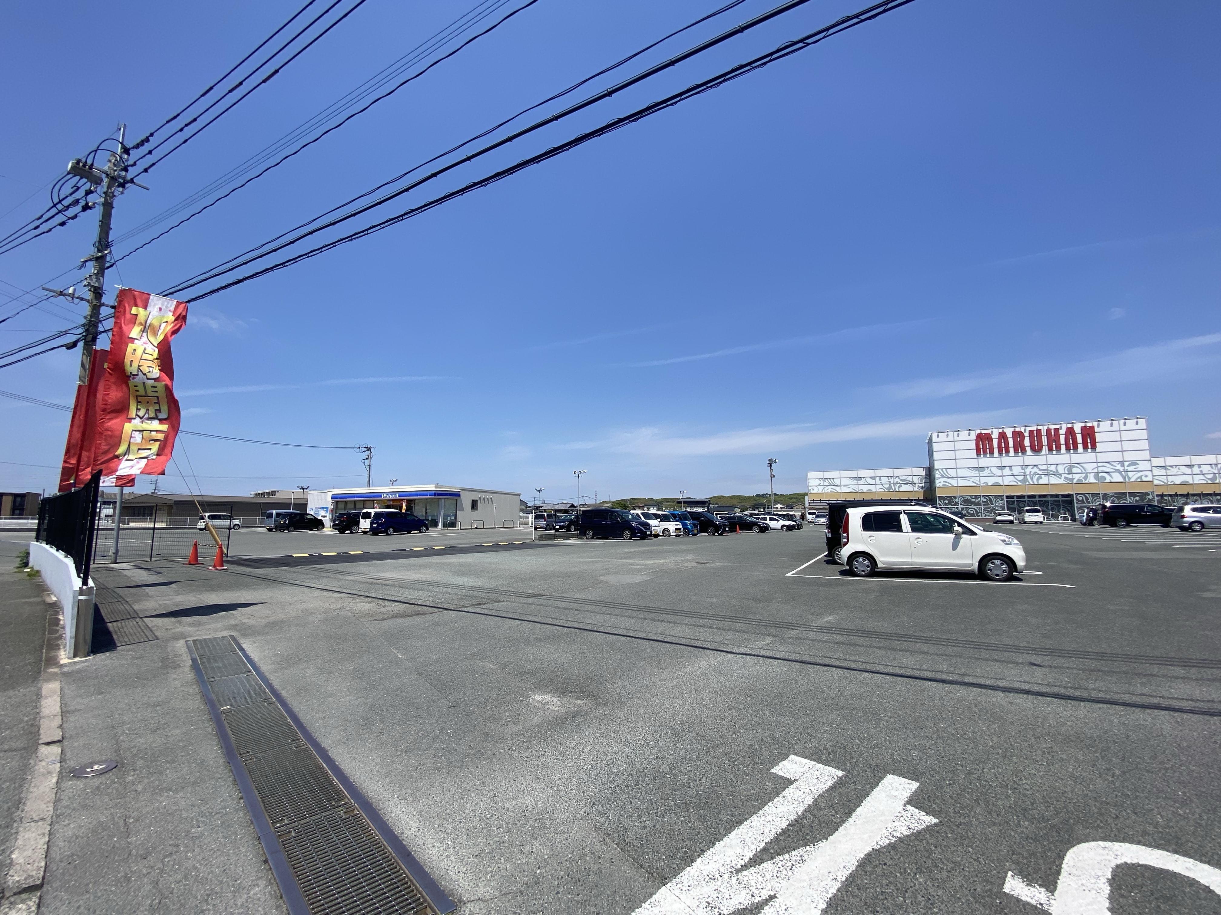 大きなマルハンを見ながら飲み物を飲み