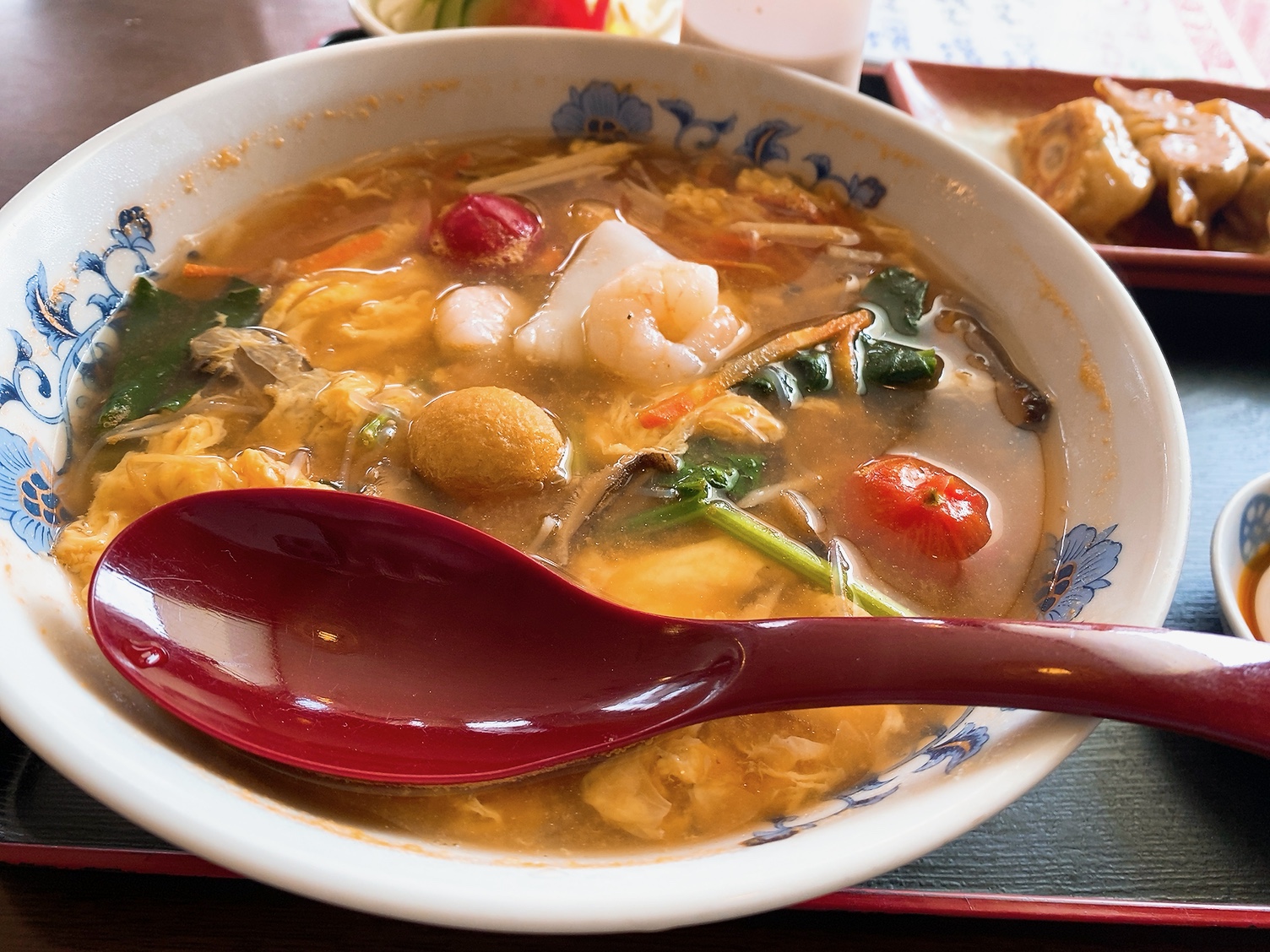 とまぴーえんは、ただトマトが入ってるだけではなくスープにもトマトの酸味が。
