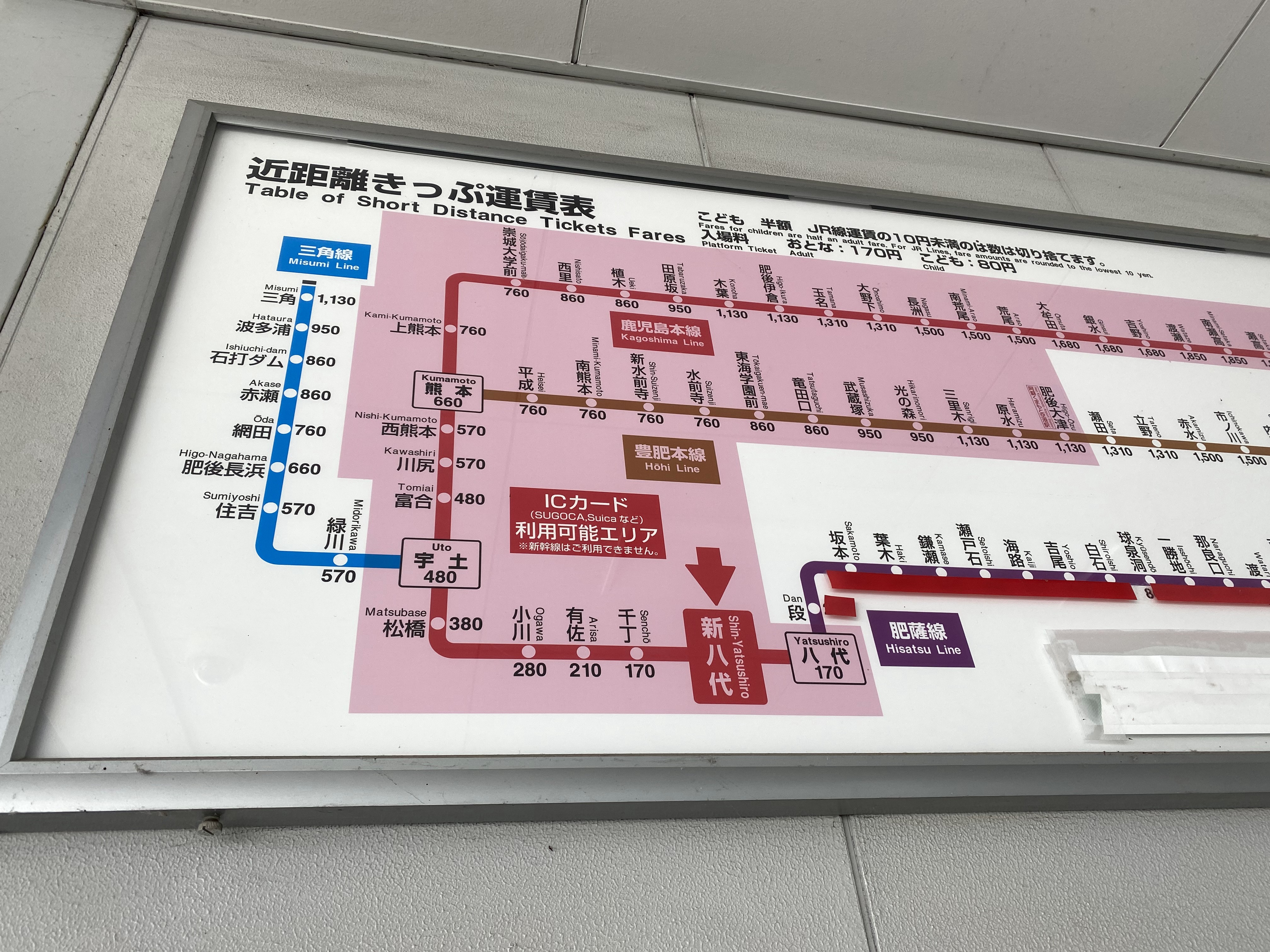 次にくる電車の目的地は新八代駅(170円)と相成りました。