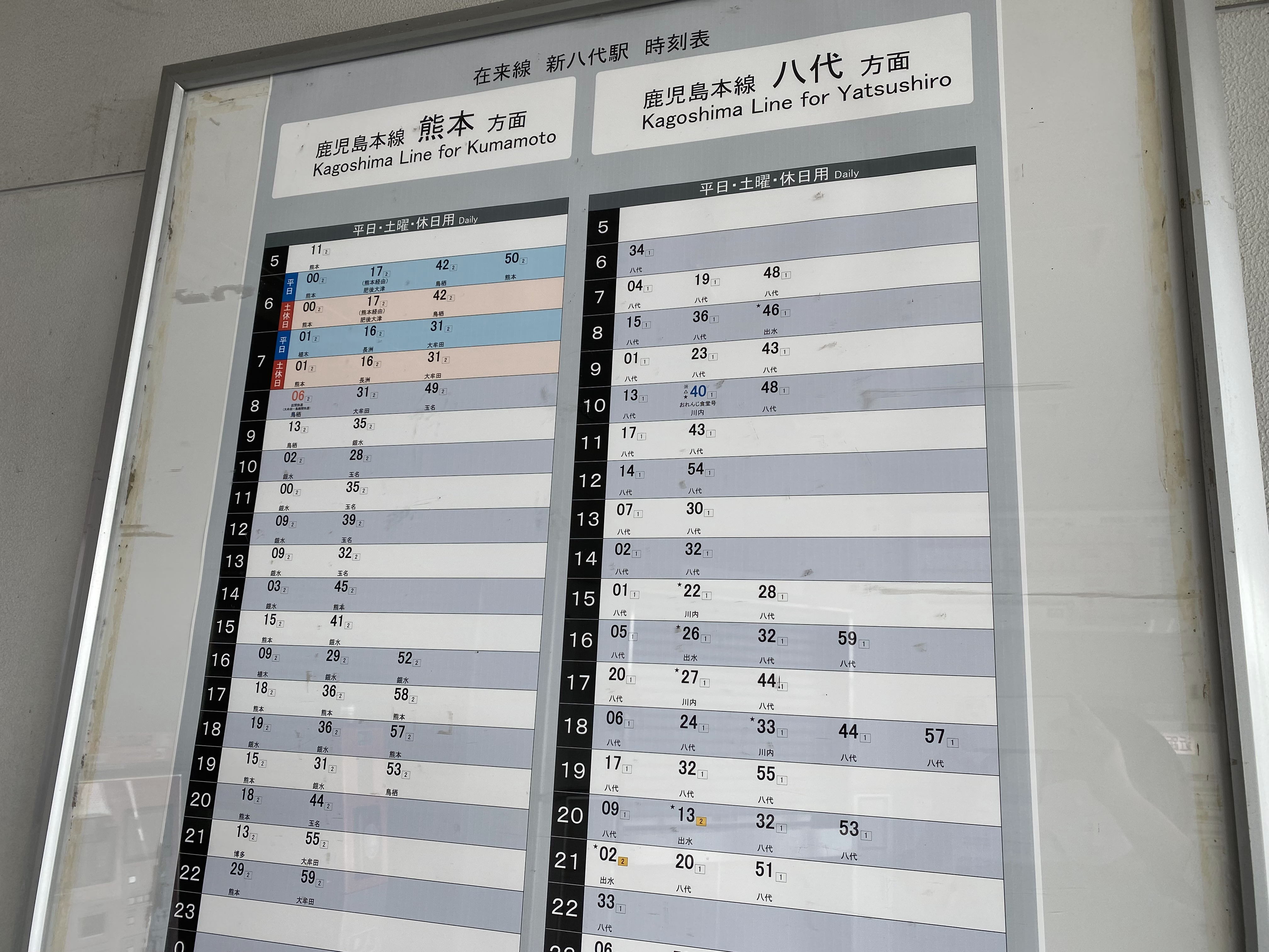 滞在時間数十分にも関わらずドタバタだった福岡旅を終え、到着しました。八代駅。