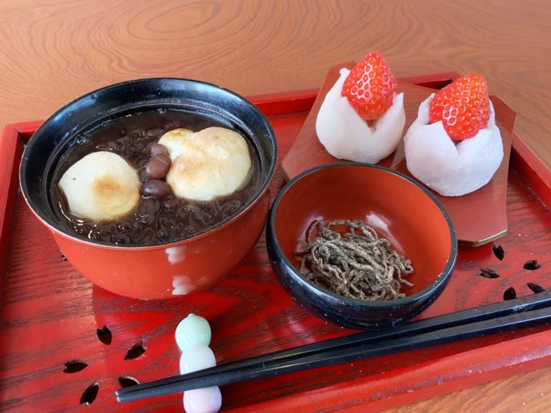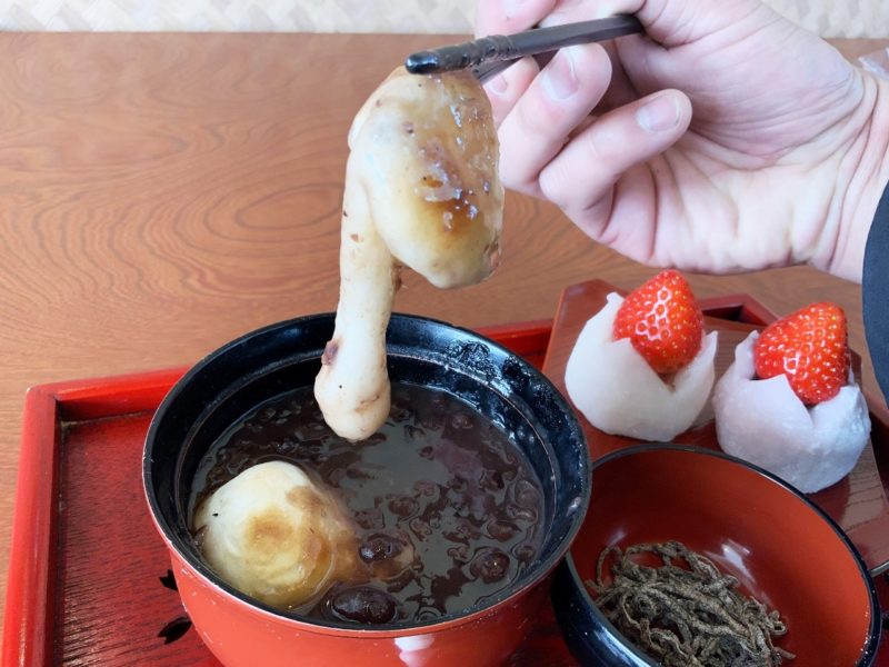 甘味と甘味で超贅沢!焼き餅ぜんざいと苺大福