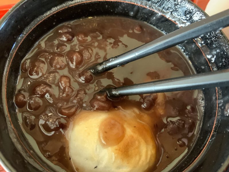 お箸で盛り上げるととろーーーーーんっととろけ落ちる柔らかさ。香ばしさともっちりした食感。そしてぜんざいの甘みがマッチしてたまりません。