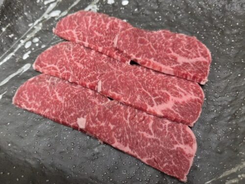 赤身が多く、脂の少ないのが特徴のランプ。脂っぽさが少ない分、噛みしめるほど肉の旨味を感じられます!