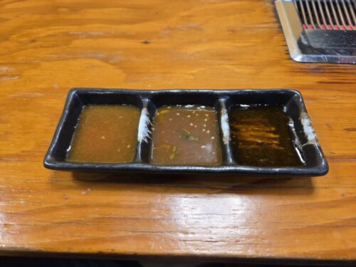 左から出汁ポン酢、味噌たれ、醤油タレです。