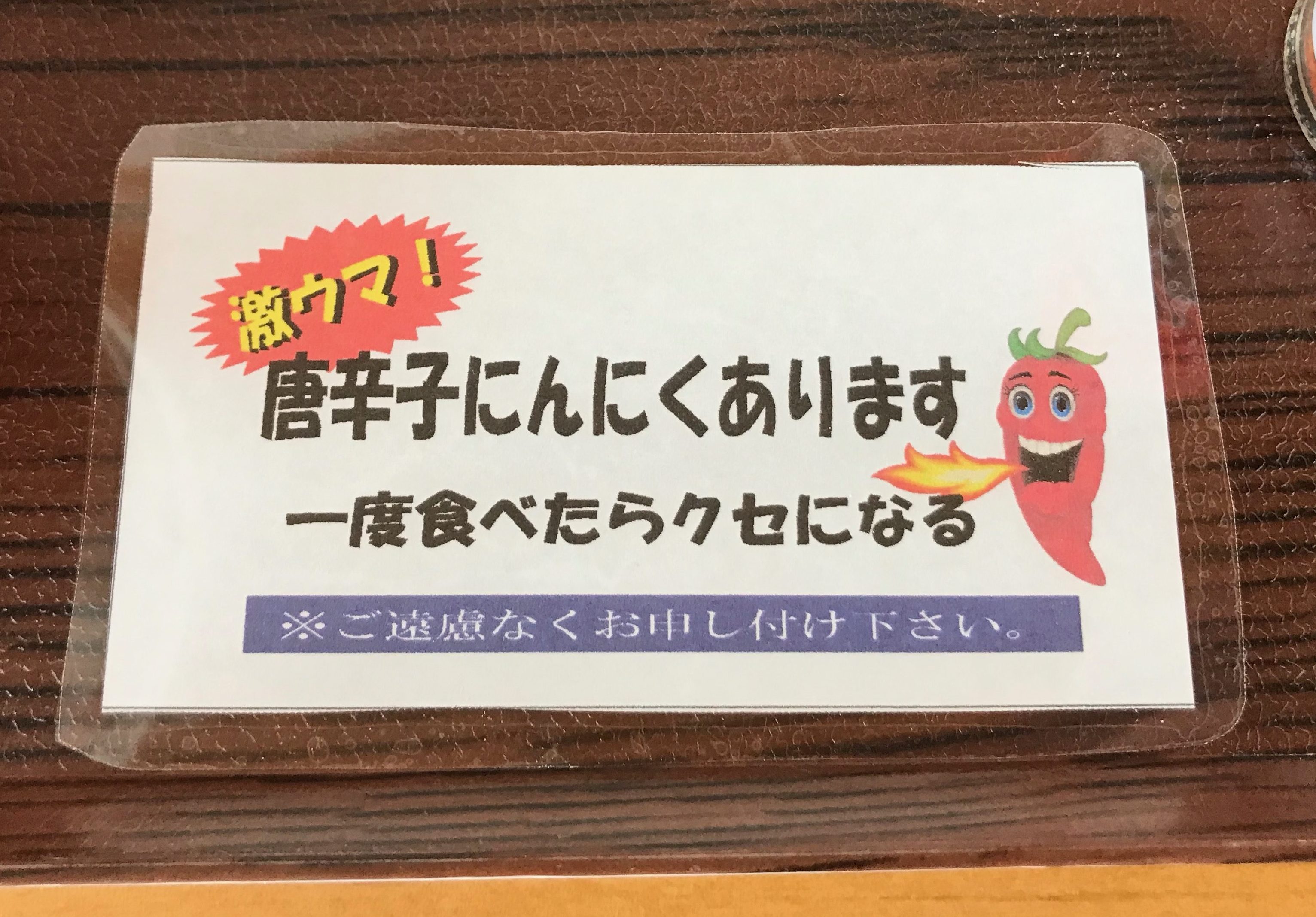 前述した「唐辛子ニンニク」をお願いすると