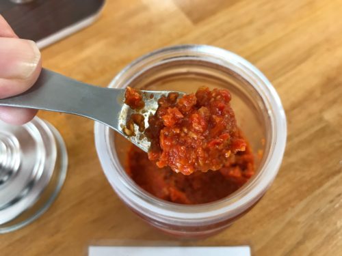 瓶詰めされた店主お手製の唐辛子ニンニクが出てきました。
