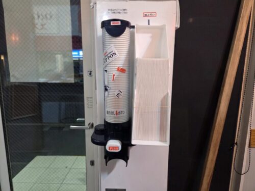お水とエプロンはセルフで、券売機の横に設置してあります。