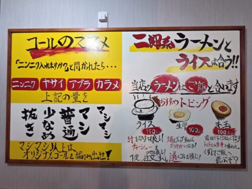 マシマシ以上は独自コールで良いようです。締めにごはんも合うのだとか。