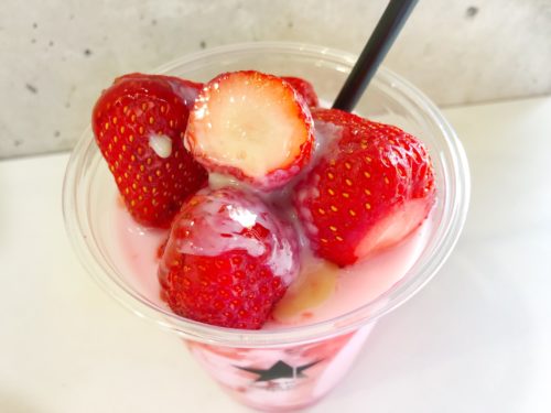 あまーい「いちごみるく」とトッピングされたいちごの甘酸っぱさが合わさって、とてもいい感じ。