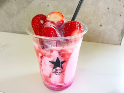 今回注文したのはSNS限定メニューの「いちごみるく」。店頭のメニューには載っていないinstagram限定のメニューで、「インスタを見た」と伝えると注文できます。