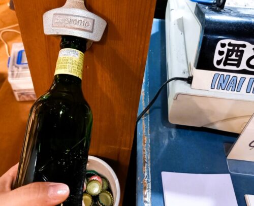 「ここで自分で栓抜き出来るんですけど、やってみます?」