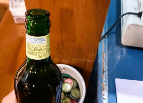 「ま、とりあえずビールで!」と注文すると渡されたのはハートランドの瓶(栓付き)。