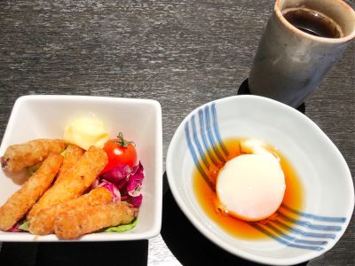 今回は、「ごぼうの唐揚げ」と「温泉たまご」を選びました。