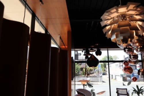 こちらの店舗では「美しい灯りがつくる心地よい暮らし」をテーマに様々な照明が置かれています。