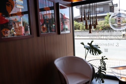 熊本市武蔵ケ丘、熊本銀行武蔵ケ丘店の近くにある、ガラスにきらきらと映る素敵なインテリア。