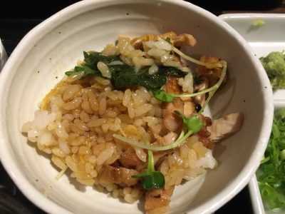 鶏は柔らかく香ばしくて、さすが焼き鳥専門店の味。ご飯にもしっかりタレが染みていて、かいわれ大根がさわやかさを演出してくれます。