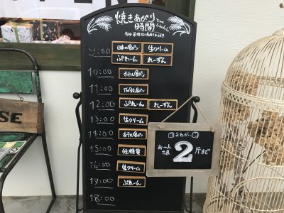 焼き上がりの時間が黒板に書いてあり、お目当のパンをゲットする際に役立ちます。