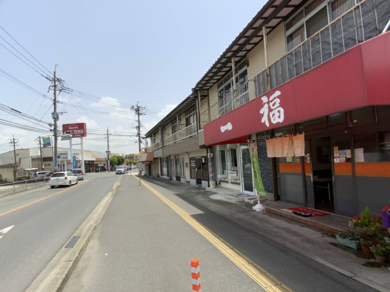 旧浜線沿いにある赤い看板が目印のラーメン店「一福」。イワサキエースのすぐ近くです。