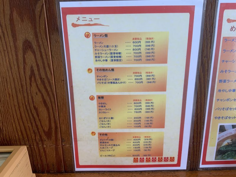 ラーメンは1杯600円。豚骨のほかに、みそラーメンもあるほか、ちゃんぽんや焼きそばも美味しそうです。